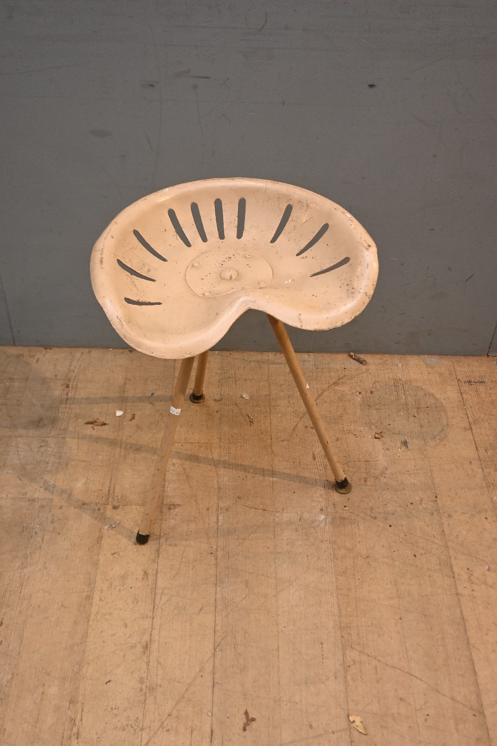 A VINTAGE ORIGINAL STEEL TRACTOR STOOL (56H X 43W X 35D CM) (LEONARD JOEL DELIVERY SIZE: LARGE)