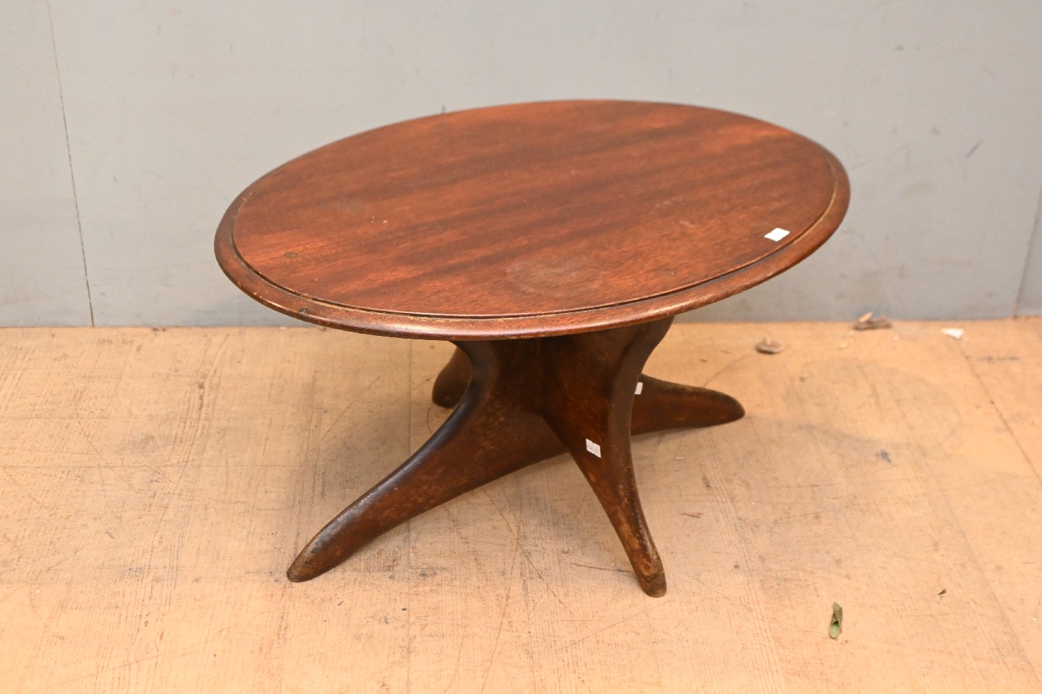 AN UNUSUAL OVAL COFFEE / OCCASIONAL TABLE (A/F) (33H X 66W X 41D CM) (LEONARD JOEL DELIVERY SIZE: LARGE)