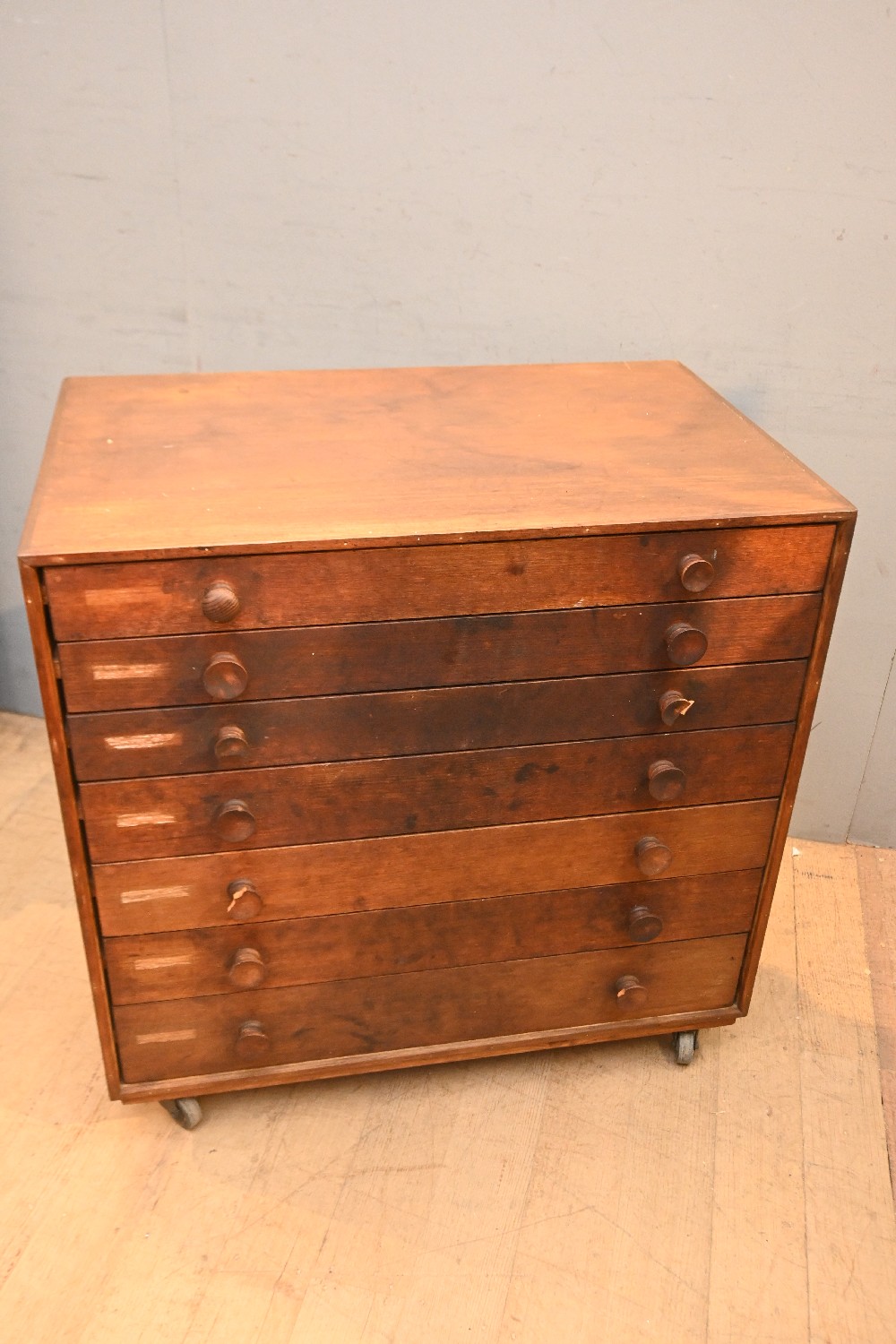 AN AUSTRALIAN PINE SET OF SEVEN MAP DRAWERS (A/F) (80H X 81W X 52D CM) (PLEASE NOTE THIS HEAVY ITEM MUST BE REMOVED BY CARRIERS AT THE CUSTOMER'S EXPENSE. LEONARD JOEL STAFF CANNOT ASSIST CARRYING THIS ITEM) (LARGE ITEM)