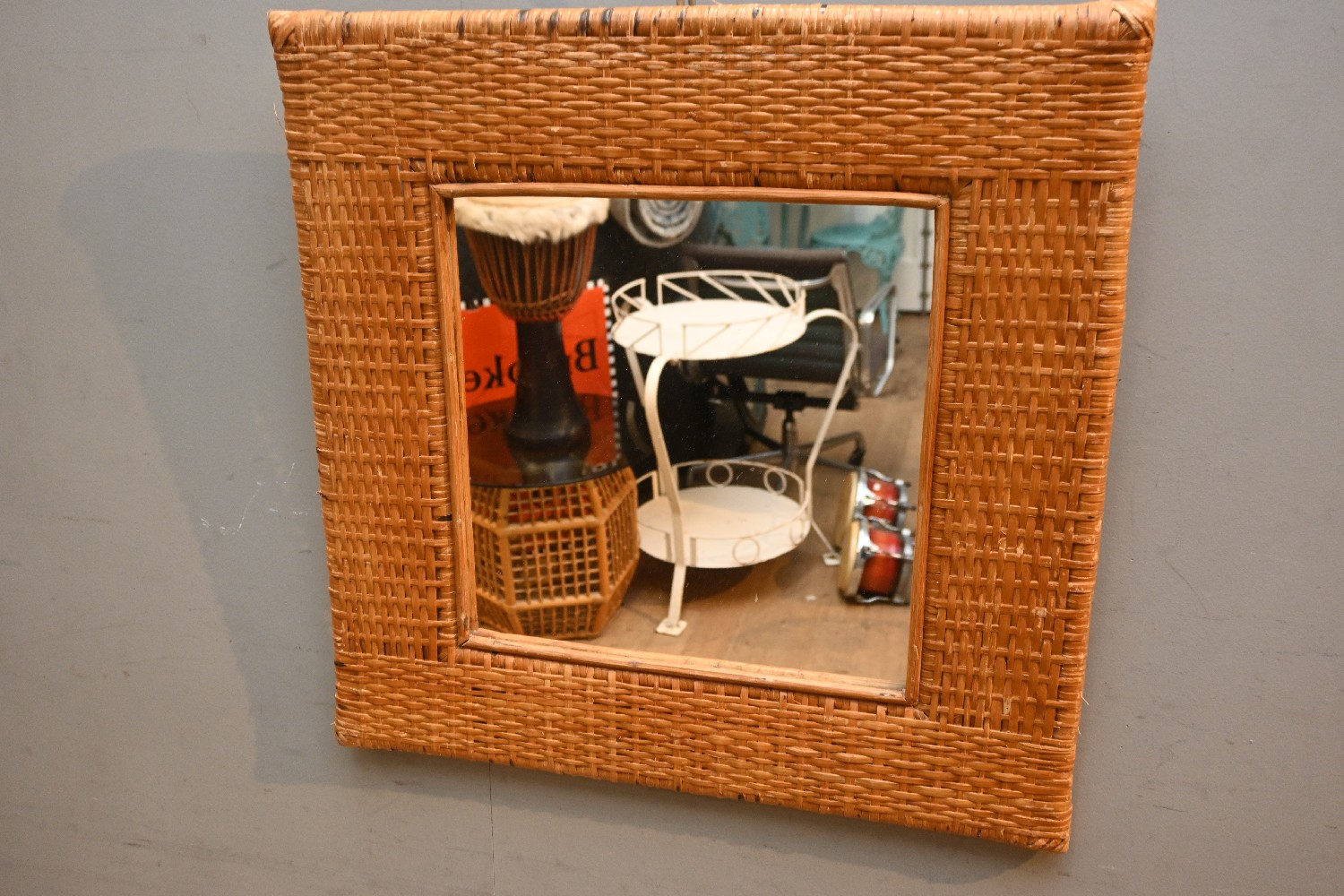 A WOVEN CANE RECTANGULAR MIRROR (67H X 67W CM) (LEONARD JOEL DELIVERY SIZE: MEDIUM)