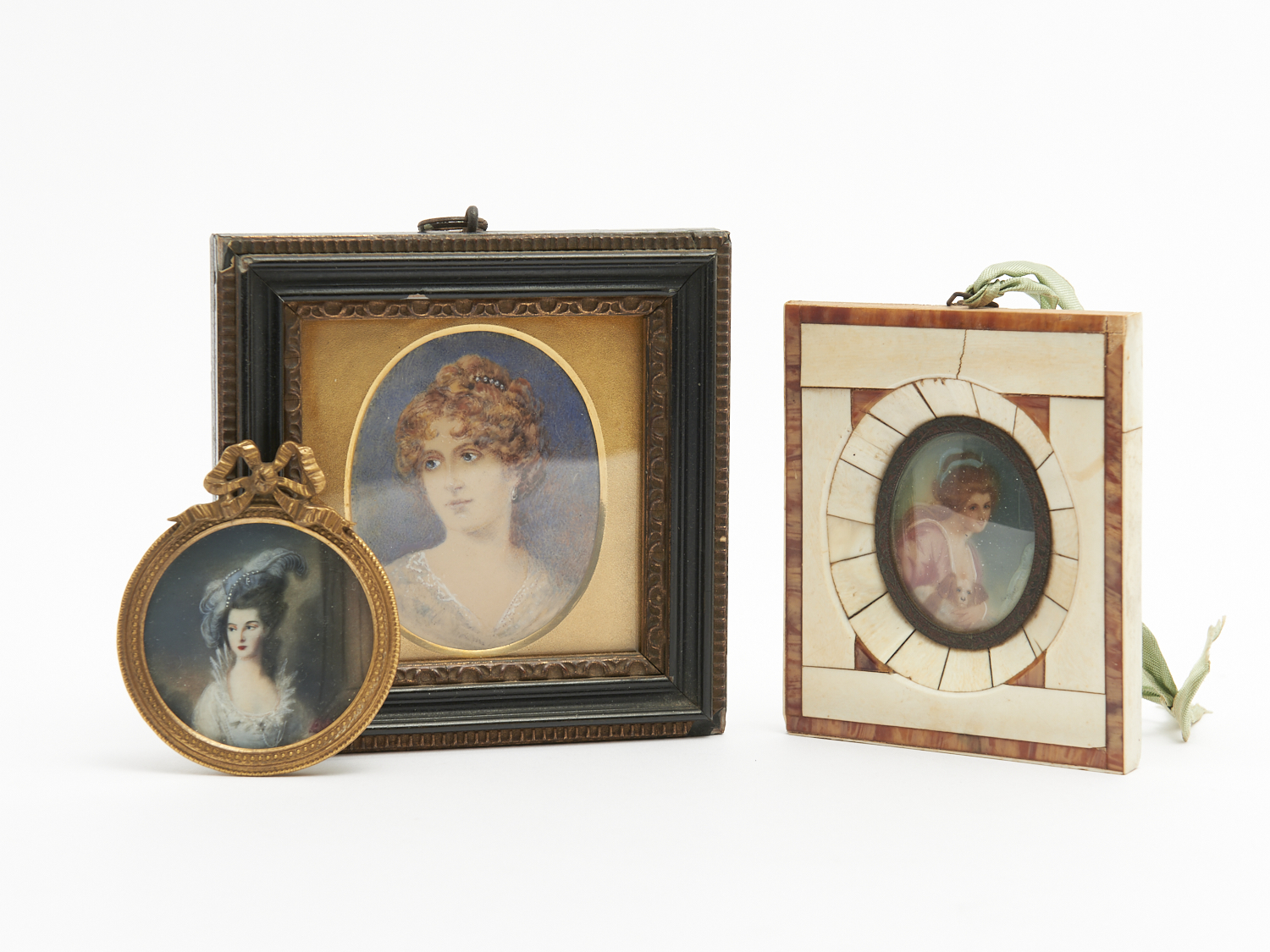 THREE ANTIQUE PORTRAIT MINIATURES H.12CM (LARGEST), LEONARD JOEL DELIVERY SIZE: SMALL