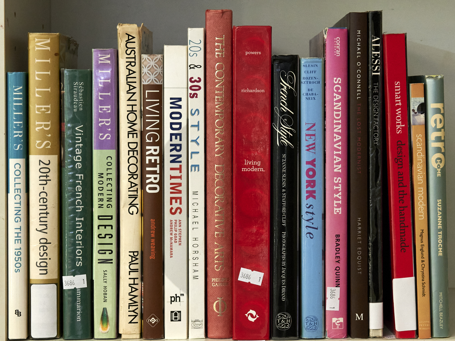 A SHELF OF BOOKS ON MID-CENTURY DESIGN, LEONARD JOEL DELIVERY SIZE: MEDIUM