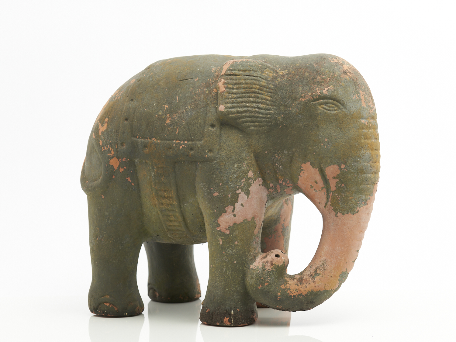 A WEATHERED TERRACOTTA ELEPHANT SCULPTURE H.24CM, LEONARD JOEL DELIVERY SIZE: SMALL