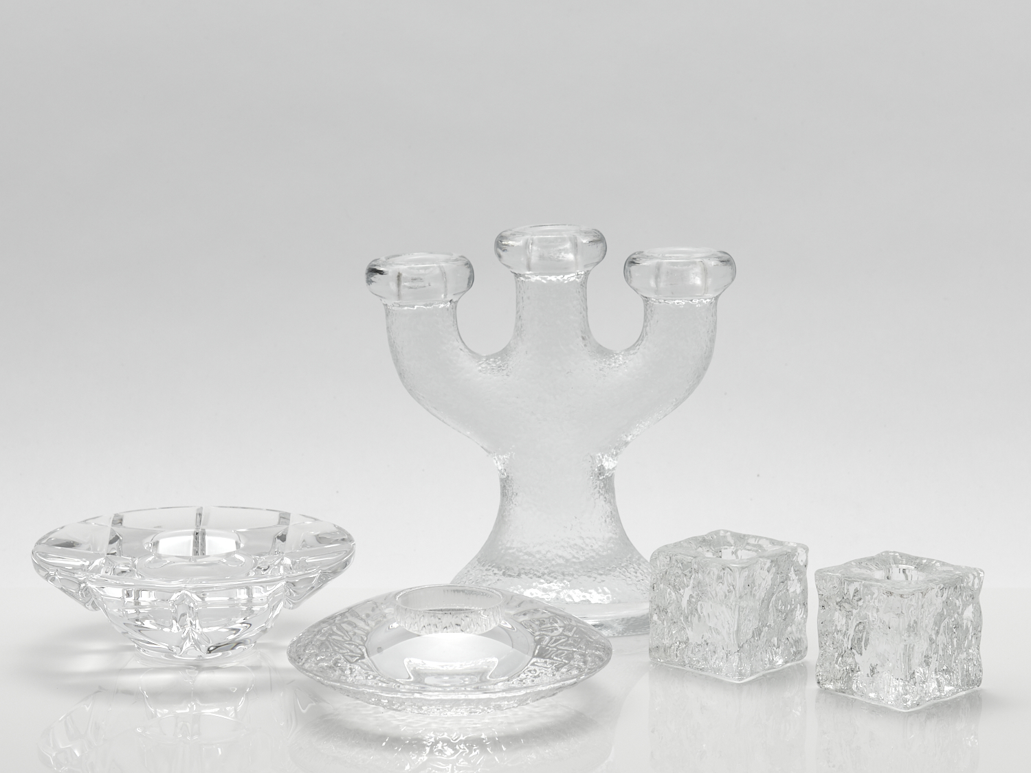 A COLLECTION OF FIVE SWEDISH CANDLEHOLDERS H.25CM, LEONARD JOEL DELIVERY SIZE: MEDIUM