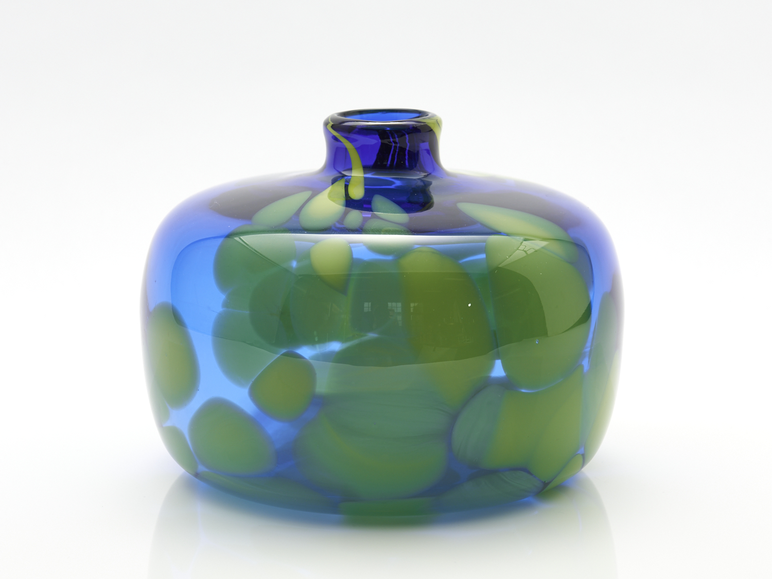A BLUE AND YELLOW ITALIAN STYLE GLASS VASE H.15CM, LEONARD JOEL DELIVERY SIZE: SMALL