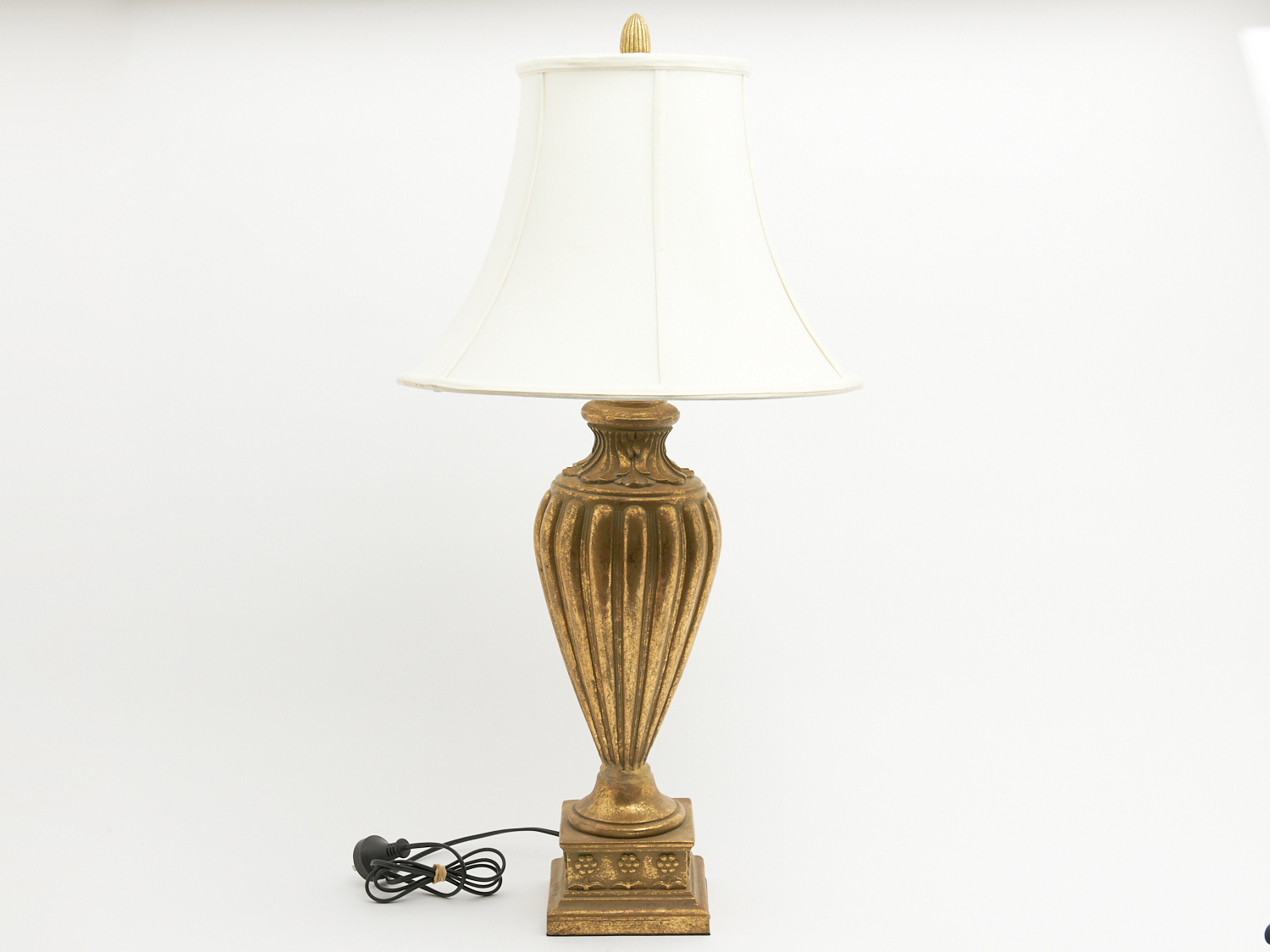 A CLASSICAL STYLE GILT TABLE LAMP H.80CM, LEONARD JOEL DELIVERY SIZE: MEDIUM
