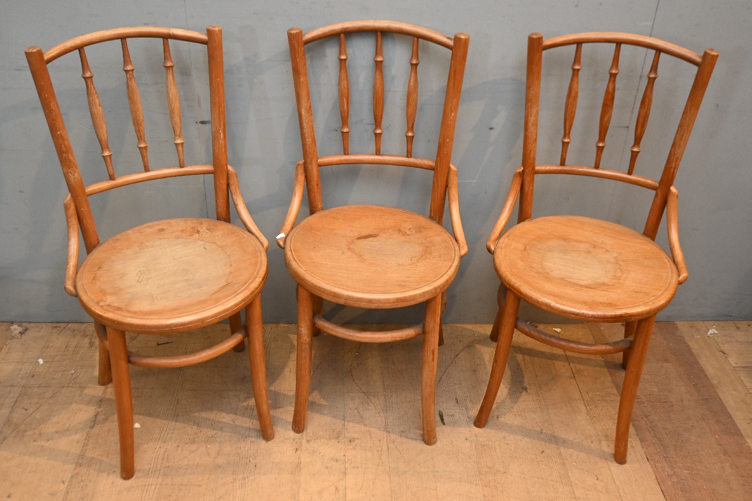 A GROUP OF THREE 20TH CENTURY BENTWOOD CHAIRS WITH SPINDLE BACKS (90H X 47W X 46D CM) (LEONARD JOEL DELIVERY SIZE: LARGE)