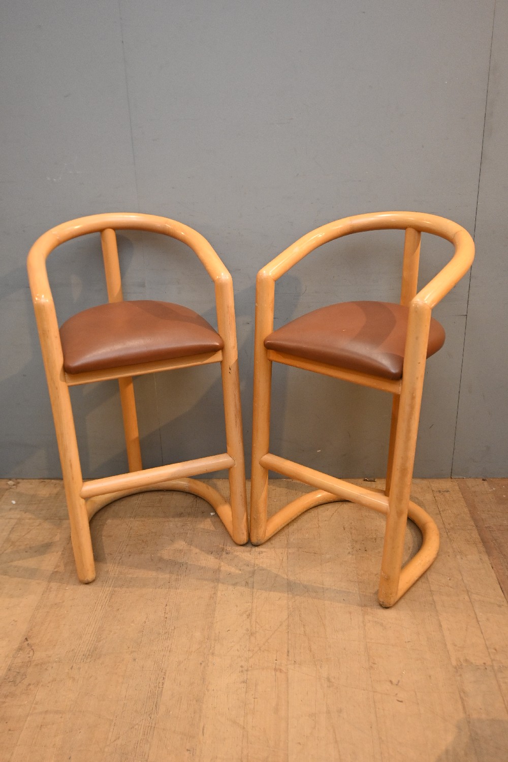 A PAIR OF RETRO VINYL UPHOLSTERED BARSTOOLS (103H X 54W X 52D CM) (LEONARD JOEL DELIVERY SIZE: X-LARGE)