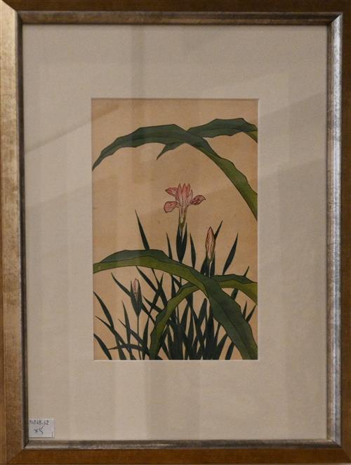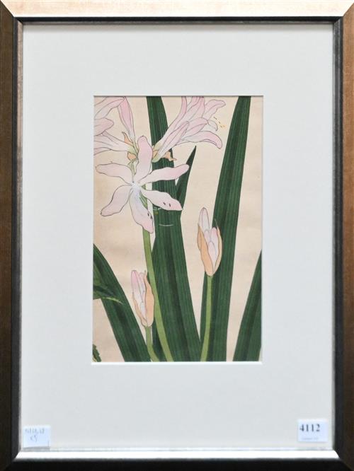 JAPANESE SCHOOL (19TH CENTURY), A GROUP OF FIVE BOTANICAL WOODBLOCKS, UNSIGNED, 22 X 15CM (EACH), FRAME SIZE: 40 X 31CM (EACH)