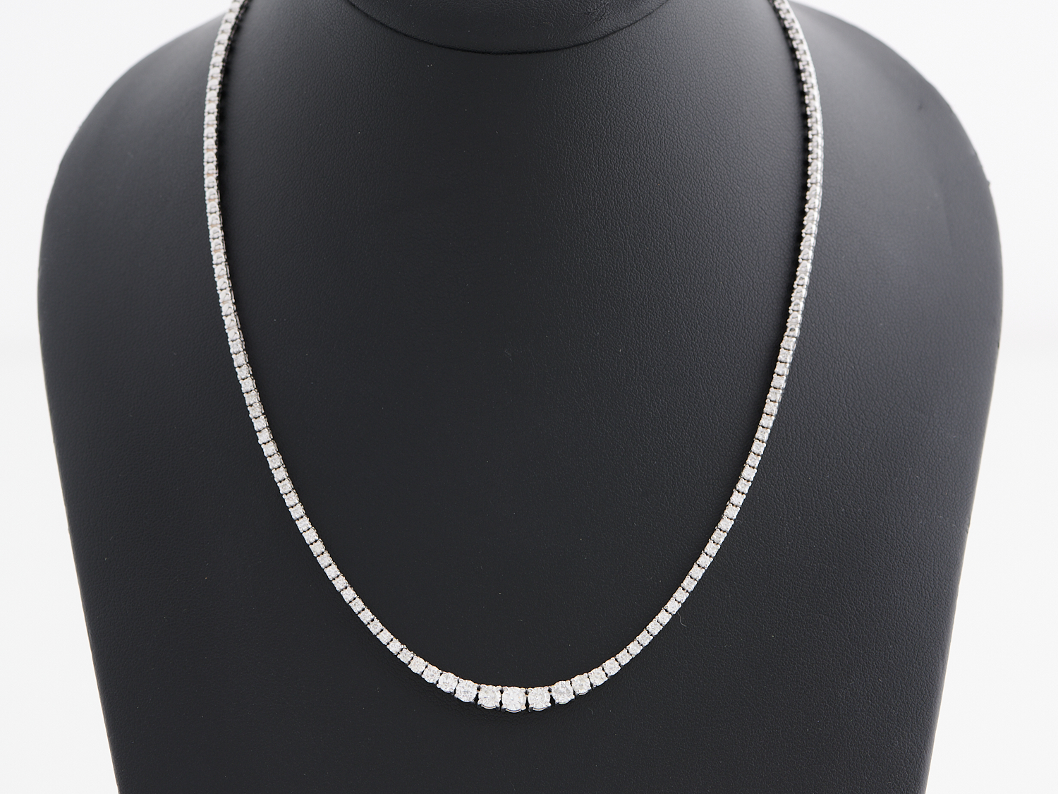 A DIAMOND NECKLACE IN 18CT WHITE GOLD, THE DIAMONDS TOTALLING 3.50CTS (G/SI), LENGTH 421MM, ACCOMPANIED BY A VALUATION