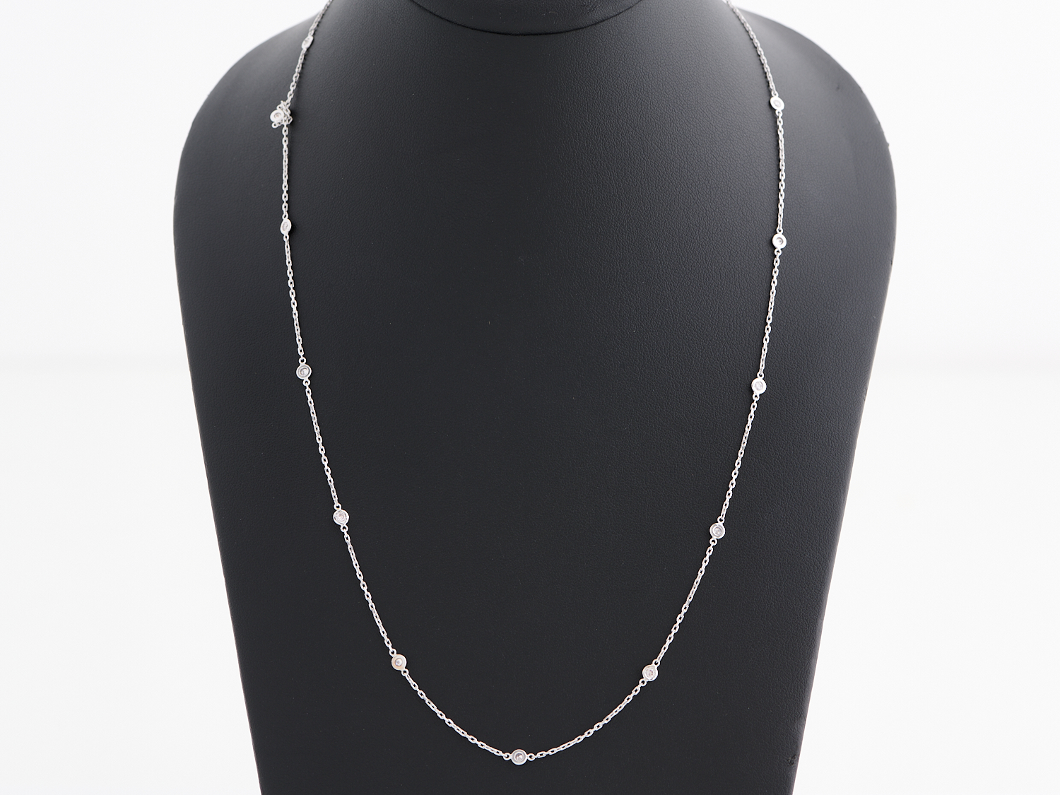 A PINK DIAMOND NECKLACE IN 18CT WHITE GOLD, THE PINK DIAMONDS TOTALLING 0.68CTS, LENGTH 560MM