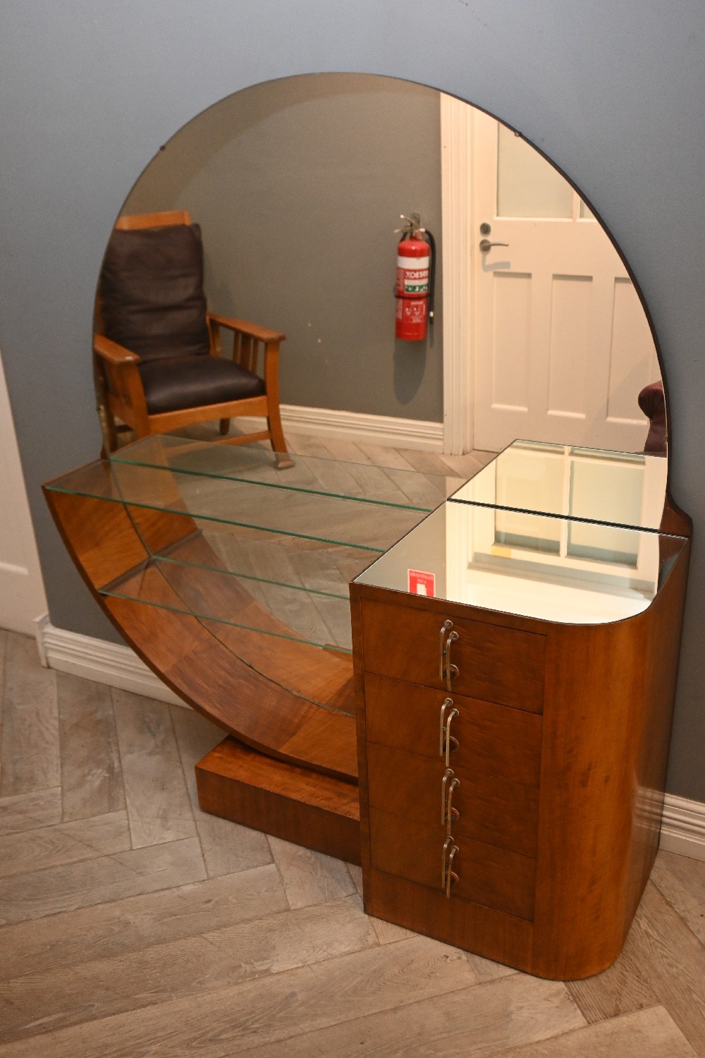 A CIRCA 1920'S - 40'S ART DECO WALNUT MIRROR BACKED DRESSER (161H X 147W X 48D CM) (PLEASE NOTE THIS HEAVY ITEM MUST BE REMOVED BY CARRIERS AT THE CUSTOMER'S EXPENSE. LEONARD JOEL STAFF CANNOT ASSIST CARRYING THIS ITEM) (LARGE ITEM)