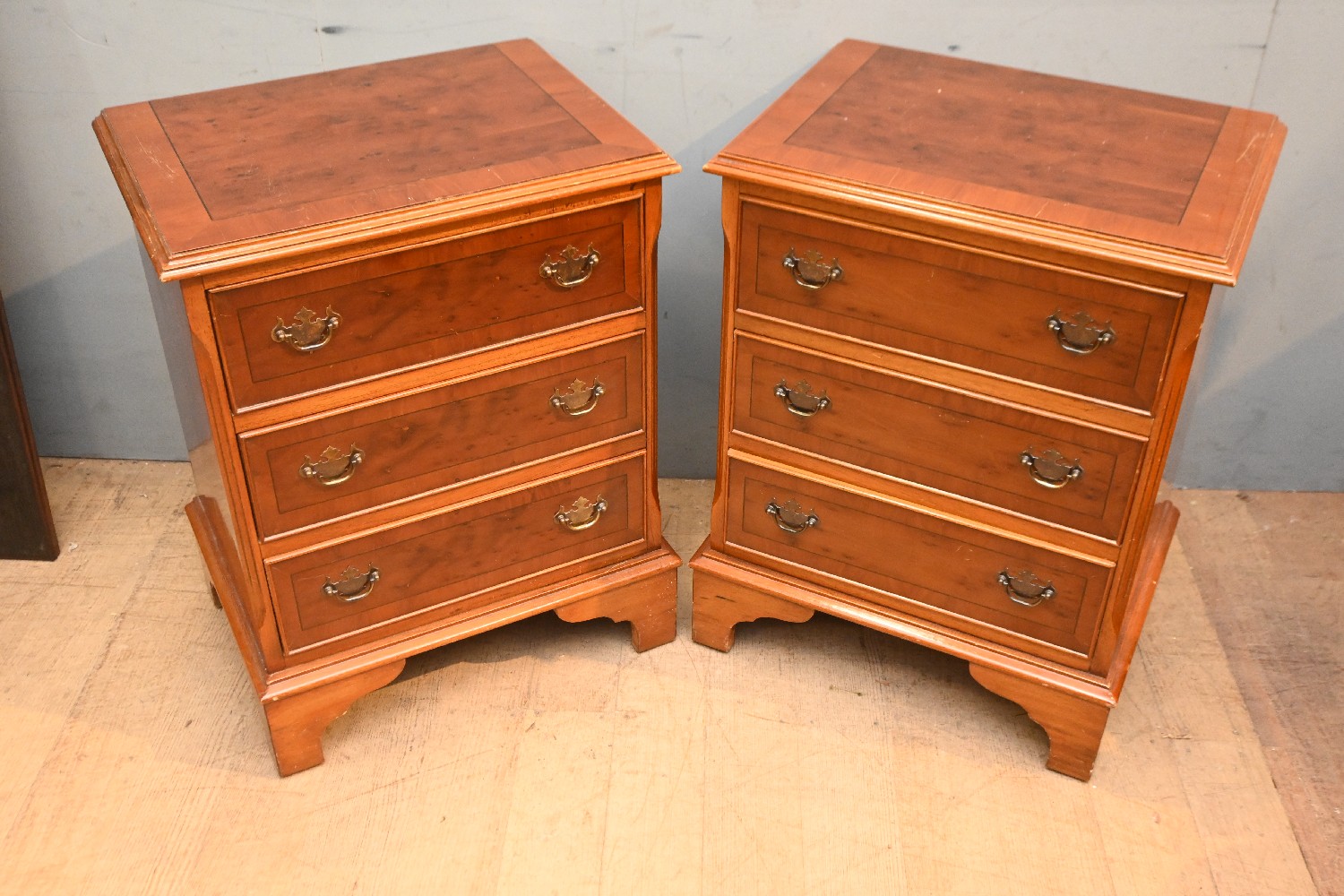 A PAIR OF GEORGIAN STYLE THREE DRAWER CHESTS (A/F) (65H X 51W X 35D CM) (LEONARD JOEL DELIVERY SIZE: X-LARGE)