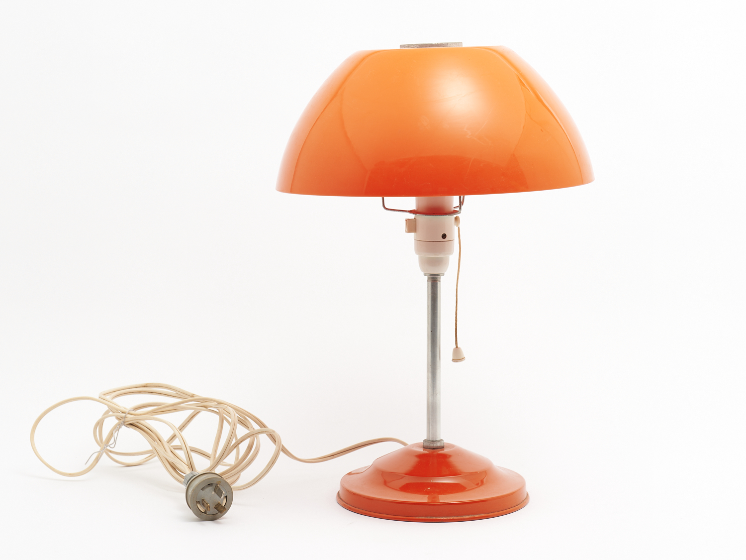 A MID-CENTURY ORANGE LAMP H.42CM, LEONARD JOEL DELIVERY SIZE: SMALL