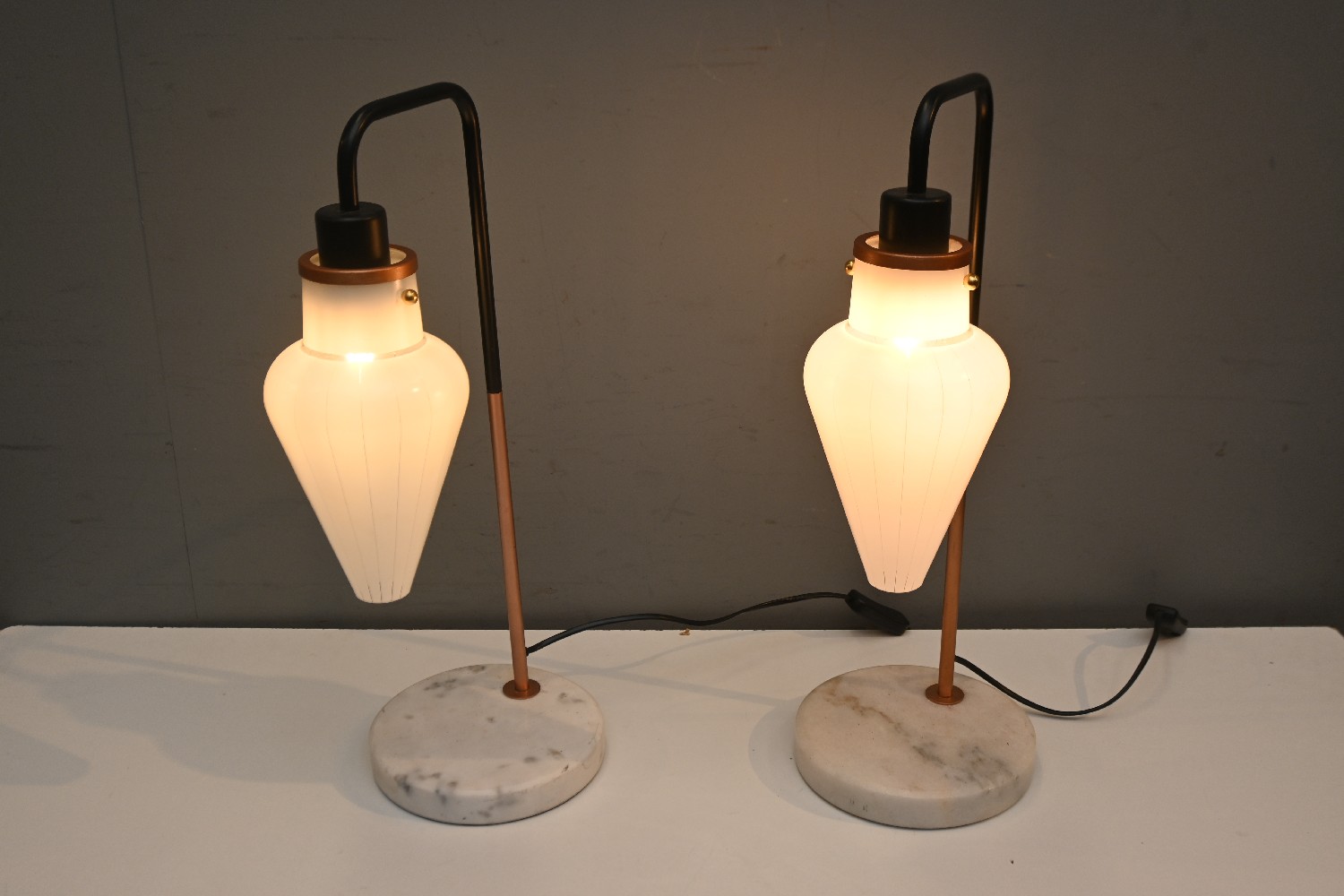 A PAIR OF RETRO STYLE GLASS TABLE LAMPS (55H CM) (LEONARD JOEL DELIVERY SIZE: MEDIUM)