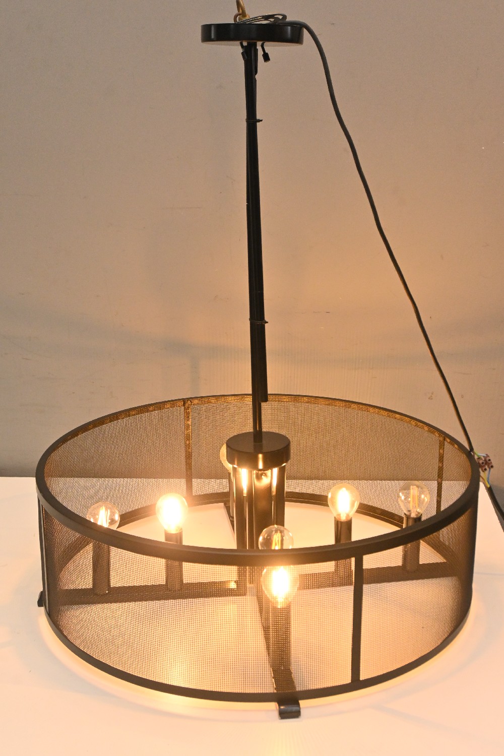 AN INDUSTRIAL PENDANT LIGHT (77H X 60D CM) (LEONARD JOEL DELIVERY SIZE: X-LARGE)