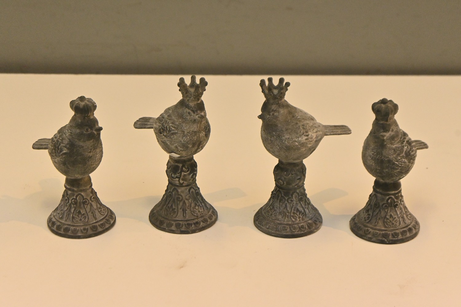 FOUR CAST IRON BIRD DECORATIONS (17H CM) (LEONARD JOEL DELIVERY SIZE: SMALL)
