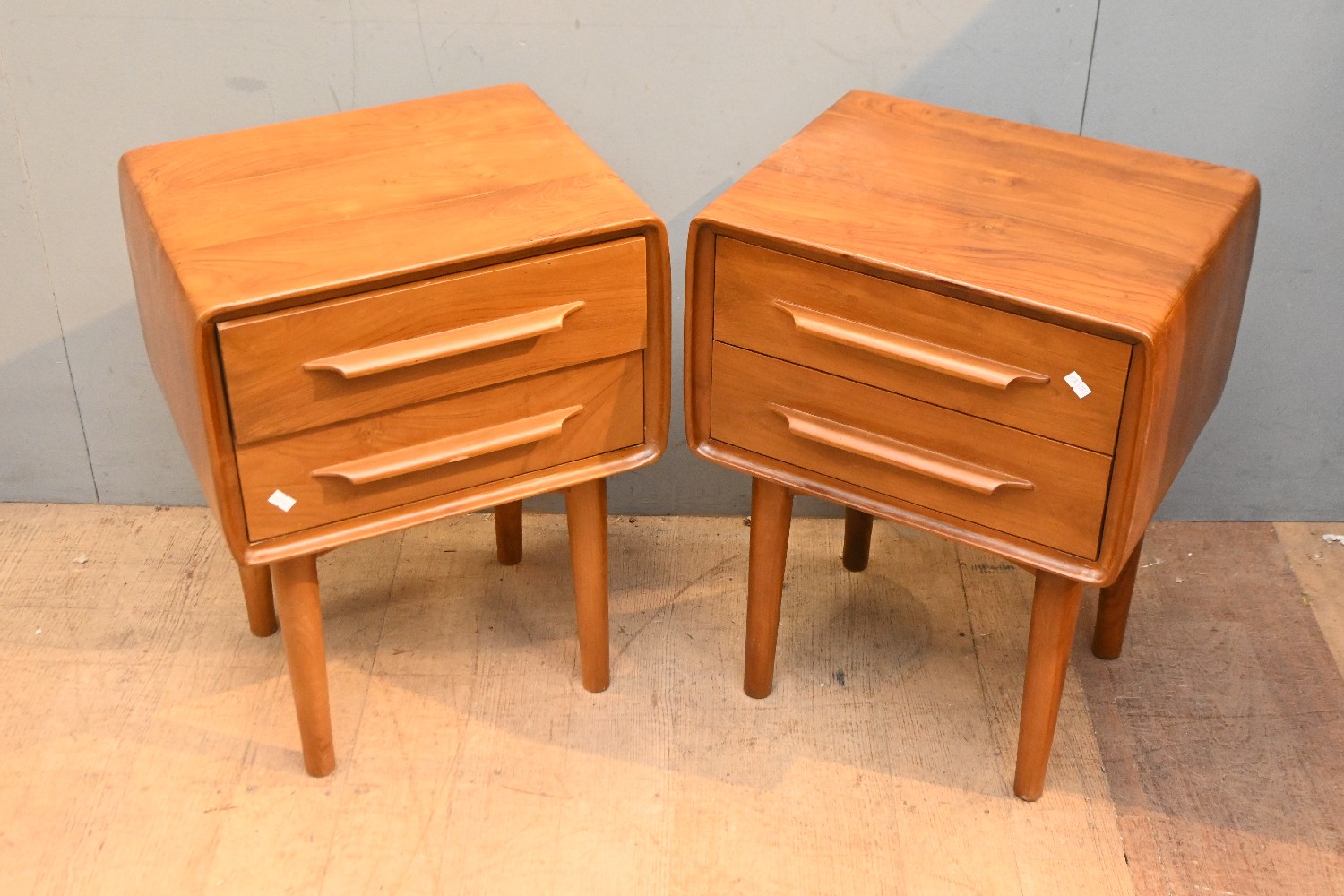 A PAIR OF SOLID TEAK BED SIDE TABLES (57H X 41W X 32D CM) (LEONARD JOEL DELIVERY SIZE: LARGE)