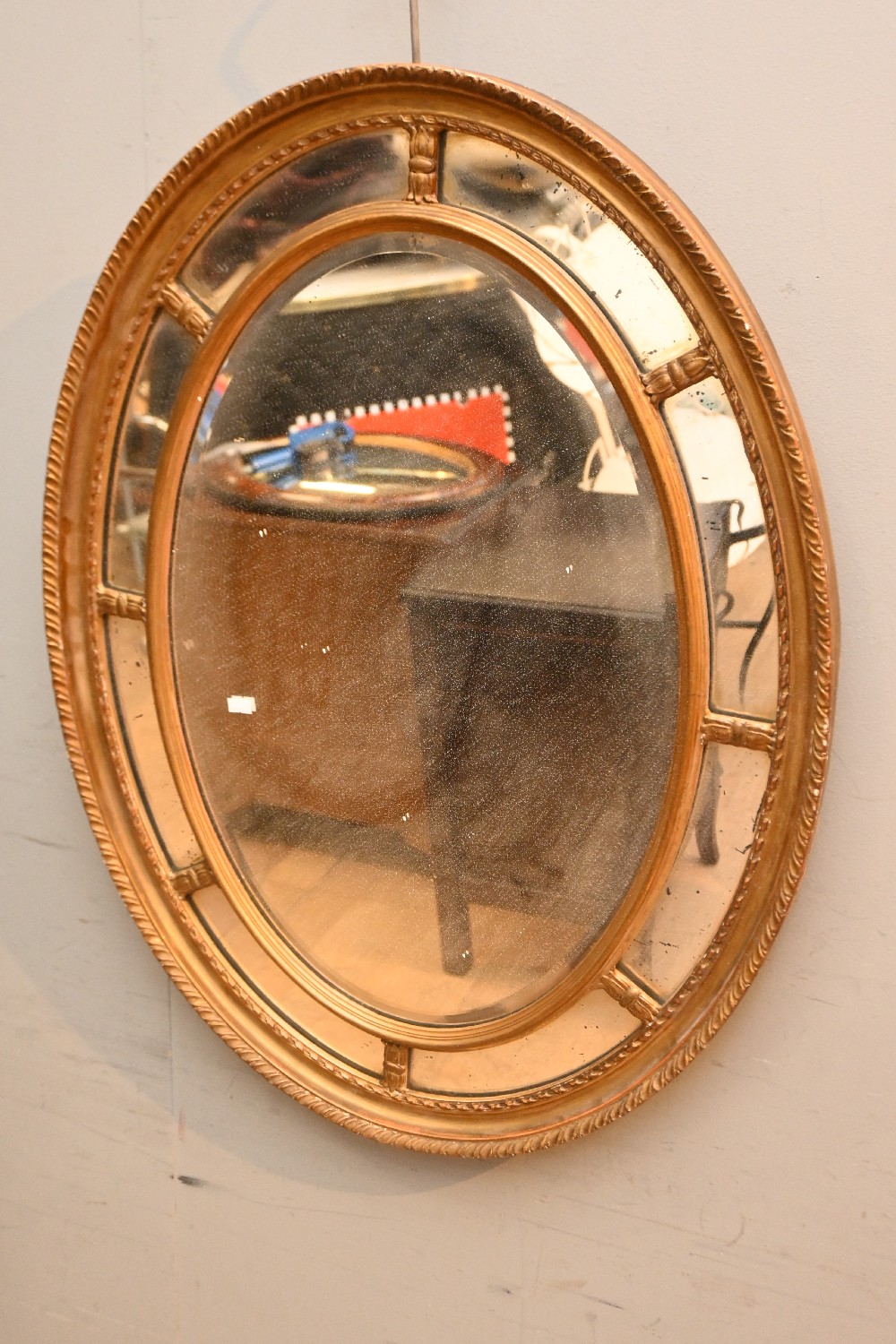 A VICTORIAN-STYLE OVAL GILT MIRROR (A/F) (88H X 67W CM) (LEONARD JOEL DELIVERY SIZE: LARGE)