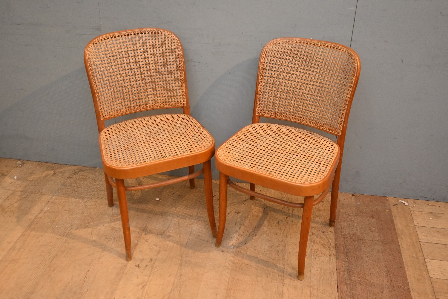 A PAIR OF BENT BEECH AND SPLIT CANE SIDE CHAIRS BY DREVOUNIA, CZECHOSLOVAKIA (81HX 44W X 52D CM) (LEONARD JOEL DELIVERY SIZE: LARGE)