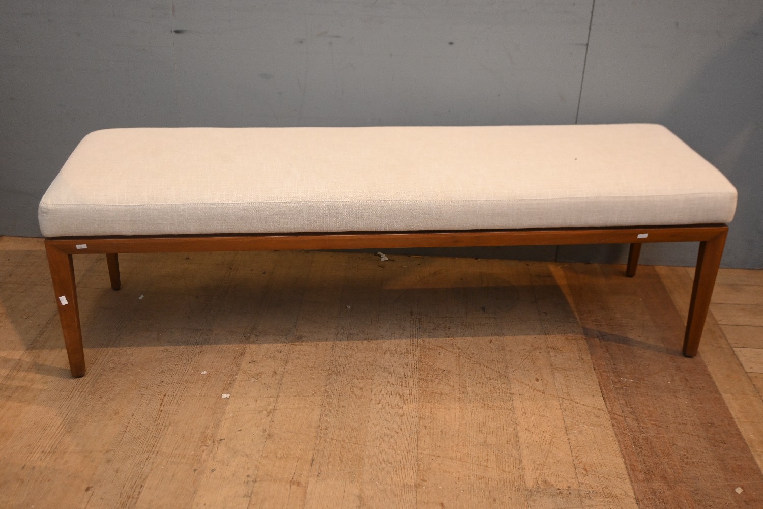 A HARDWOOD LONG STOOL WITH A FIXED CUSHION SEAT (47H X 151W X 45D CM) (LEONARD JOEL DELIVERY SIZE: X-LARGE)