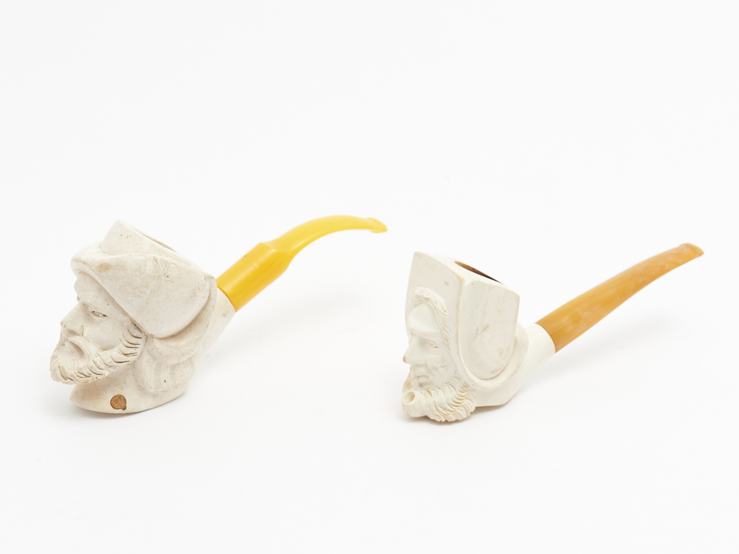 TWO EARLY 20TH CENTURY MEERCHUM AND AMBER FIGURAL PIPES L.17CM (LONGEST), LEONARD JOEL LOCAL DELIVERY: SMALL
