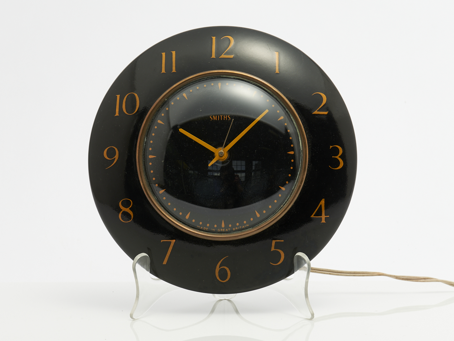 A 1950S SMITHS SENTRIC CERAMIC AND BRASS MOUNTED ELECTRIC CLOCK DIA.20CM, LEONARD JOEL LOCAL DELIVERY: SMALL