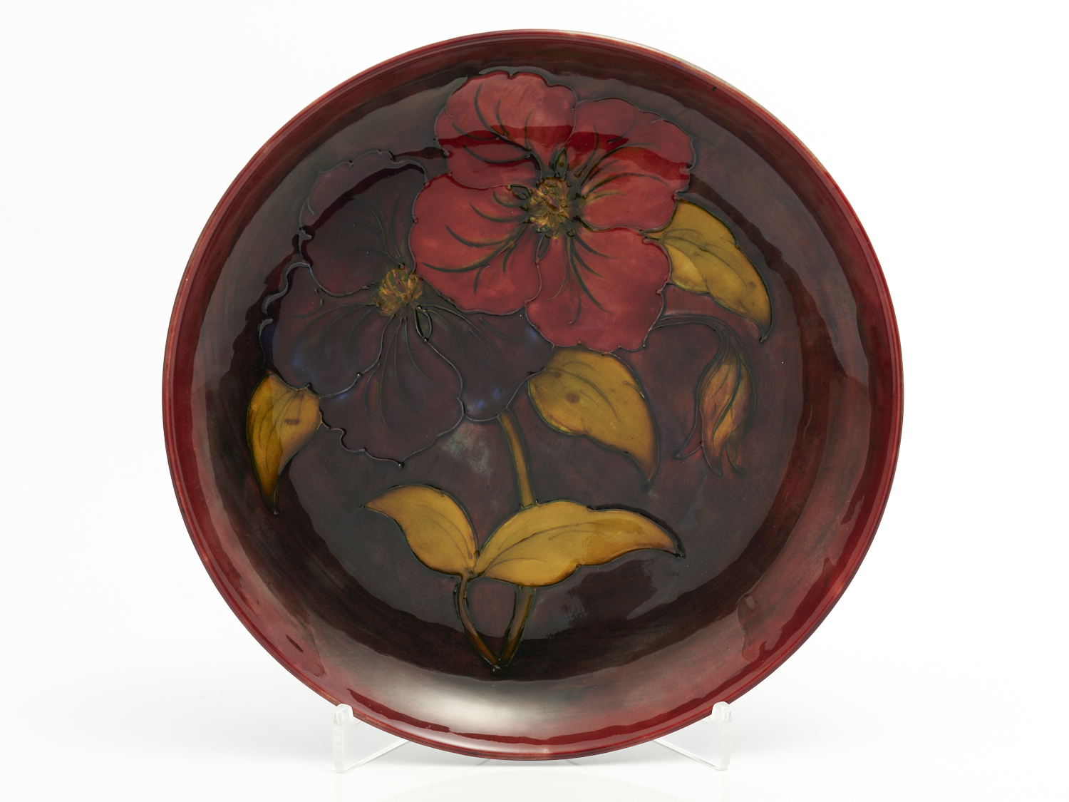 A LARGE WILLIAM MOORCROFT HIBISCUS FLAMBE BOWL (A/F) DIA.31.5CM, LEONARD JOEL LOCAL DELIVERY: SMALL