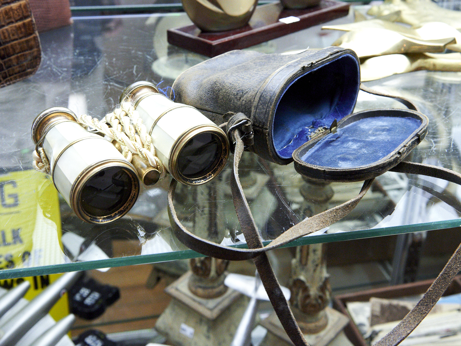 A PAIR OF 19TH CENTURY LEATHER CASED FRENCH MOTHER-OF-PEARL COVERED COLMONT PARIS BINOCULARS W.11CM, LEONARD JOEL LOCAL DELIVERY: SMALL