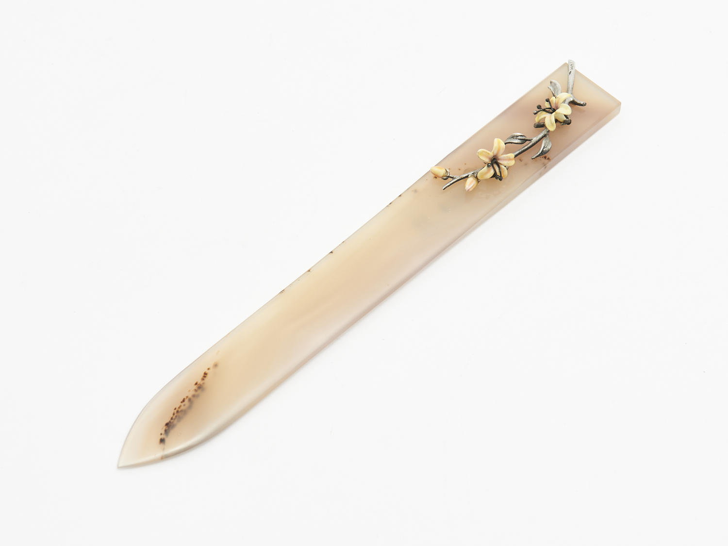 AN AGATE AND SILVER ENAMELLED FLORAL BRANCH LETTER OPENER L.20CM, LEONARD JOEL LOCAL DELIVERY: SMALL