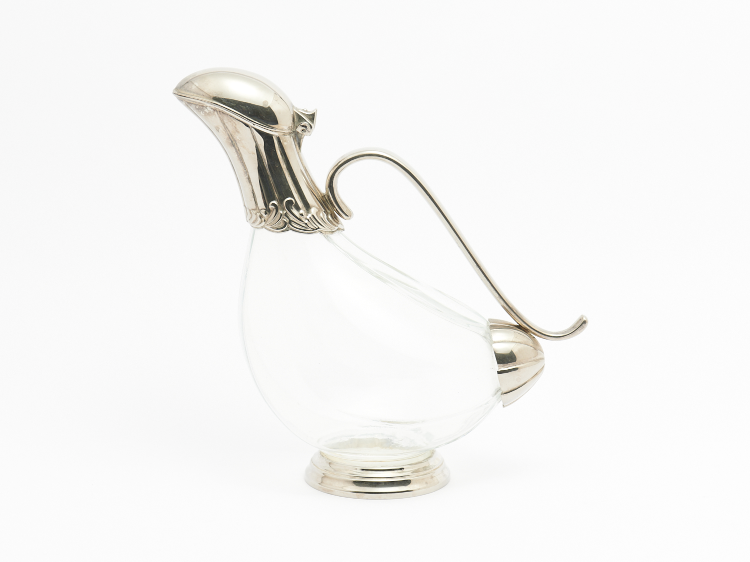 AN ITALIAN SILVER PLATE AND GLASS DUCK-FORM CLARET JUG H.24CM, LEONARD JOEL LOCAL DELIVERY: SMALL