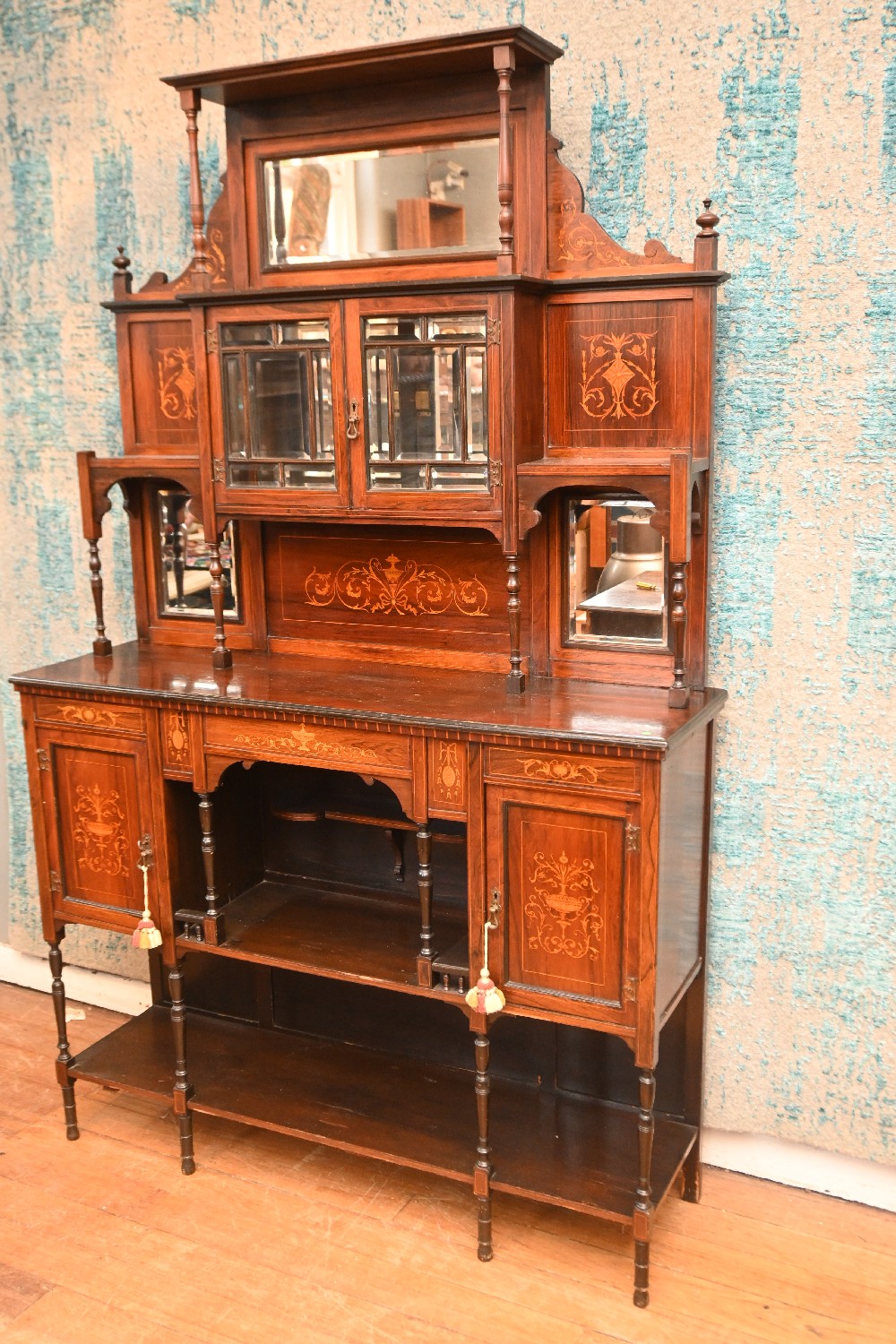 A LATE VICTORIAN ROSEWOOD AND INLAID SIDEBOARD (A/F) (219H X 137W X 40D CM) (PLEASE NOTE THIS HEAVY ITEM MUST BE REMOVED BY CARRIERS AT THE CUSTOMER'S EXPENSE. LEONARD JOEL STAFF CANNOT ASSIST CARRYING THIS ITEM) (LARGE ITEM)