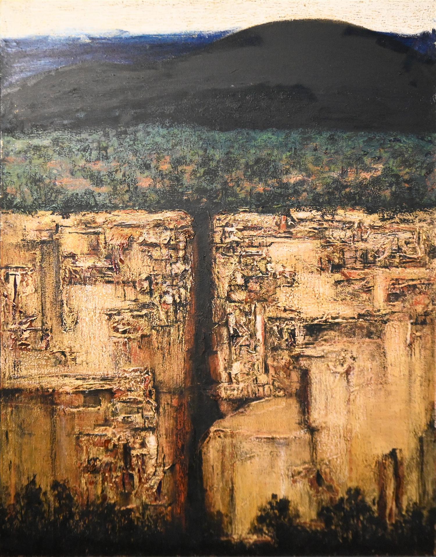 NEVILLE PILVEN, GOLD AND BLACK, OIL ON CANVAS, SIGNED AND TITLED VERSO, 122 X 91CM