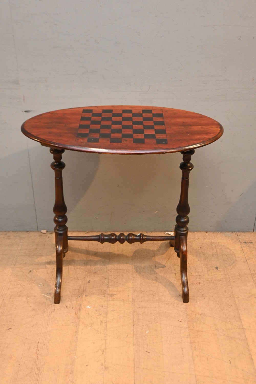 A VICTORIAN GAMES TABLE WITH INLAID CHEQUERBOARD TOP (A/F) (71H X 76W X 44D CM) (LEONARD JOEL DELIVERY SIZE: LARGE)
