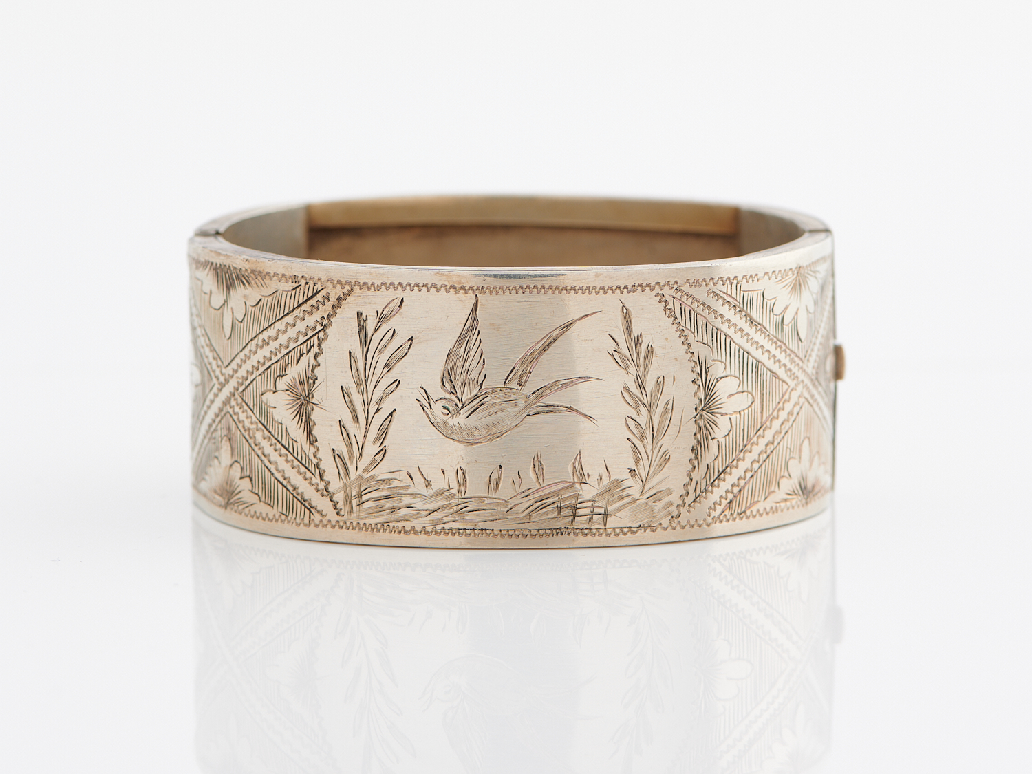 A VICTORIAN ENGRAVED CUFF IN SILVER, INNER MEASUREMENTS 60 X 50MM