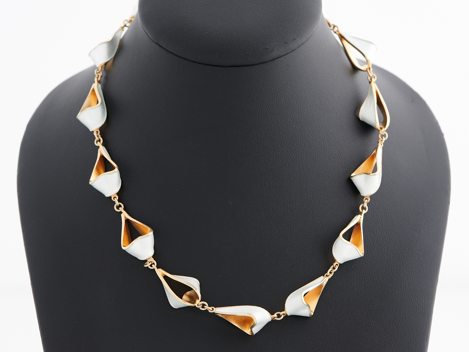 A VINTAGE ENAMELLED NECKLACE IN SILVER GILT IN THE STYLE OF DAVID ANDERSEN, LENGTH 415MM