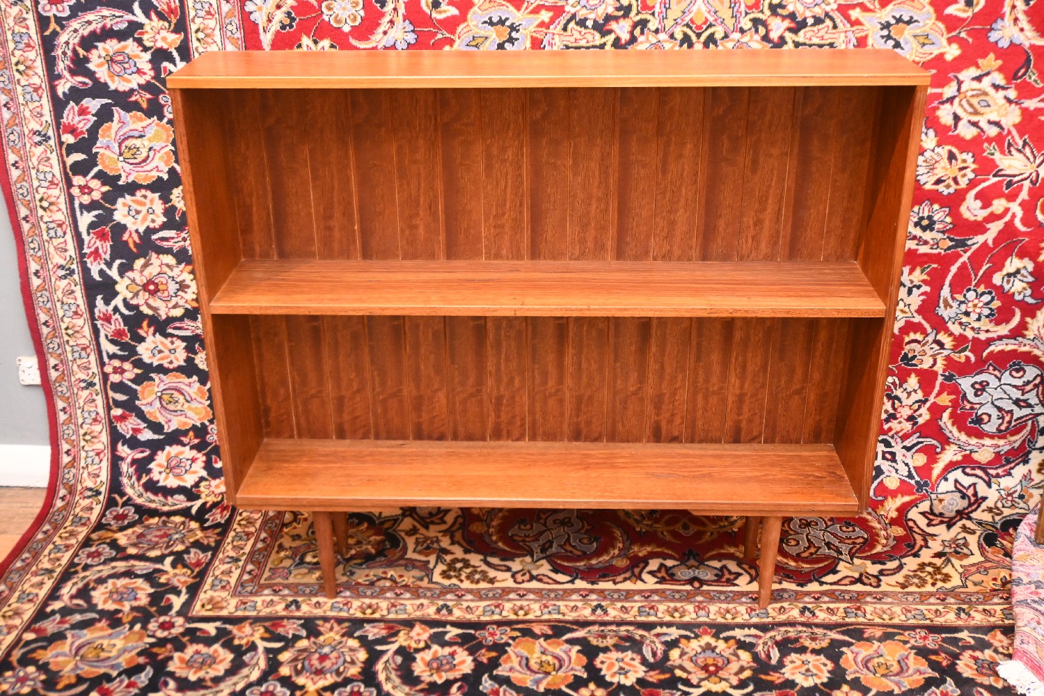 A DANISH SOLID WOOD BOOKCASE (106H X 122W X 23D CM) (PLEASE NOTE THIS HEAVY ITEM MUST BE REMOVED BY CARRIERS AT THE CUSTOMER'S EXPENSE. LEONARD JOEL STAFF CANNOT ASSIST CARRYING THIS ITEM) (LARGE ITEM)