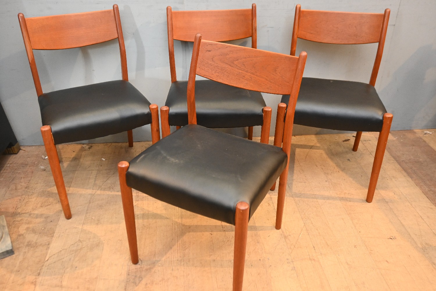 FOUR RESTORED DANISH DINING CHAIRS WITH NEW UPHOLSTERY (78H X 48W X 49D CM) (LEONARD JOEL DELIVERY SIZE: X-LARGE)