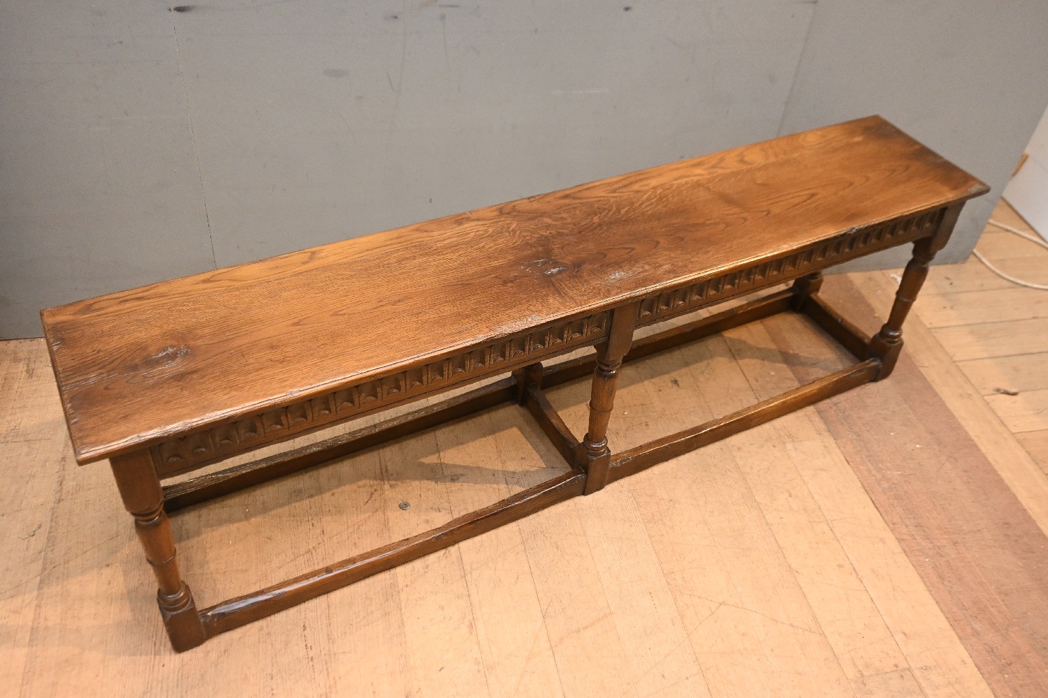 A 17TH CENTURY STYLE ENGLISH OAK JOINT BENCH (46H X 151W X 29D CM) (LEONARD JOEL DELIVERY SIZE: X-LARGE)