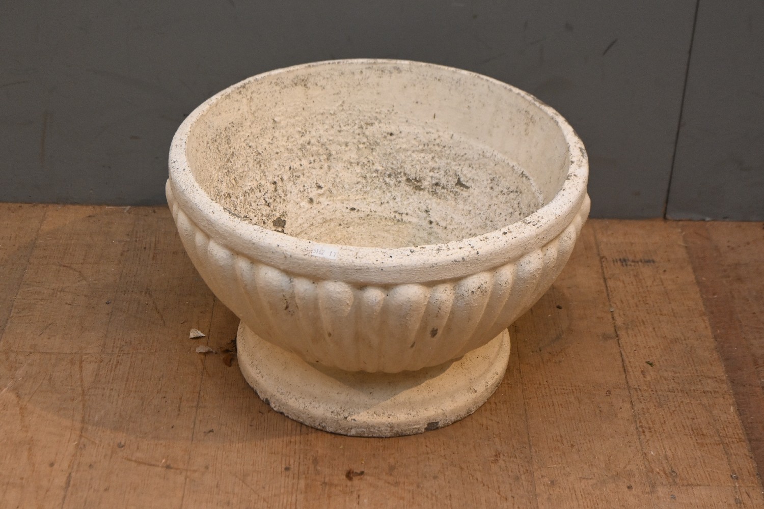 A VINTAGE PAINTED CONCRETE POT (A/F) (2H X 40D CM) (LEONARD JOEL DELIVERY SIZE: X-LARGE)