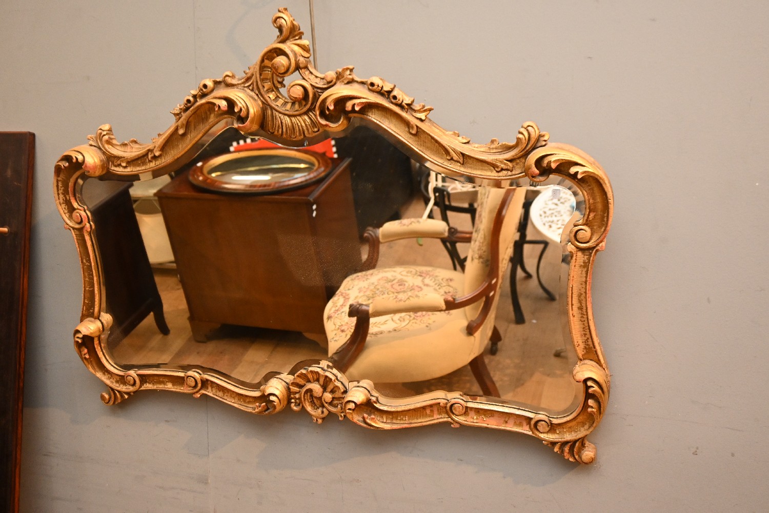 A GILT-FRAMED WALL MIRROR IN ANTIQUE MANNER (A/F) (75H X 101W CM) (LEONARD JOEL DELIVERY SIZE: LARGE)