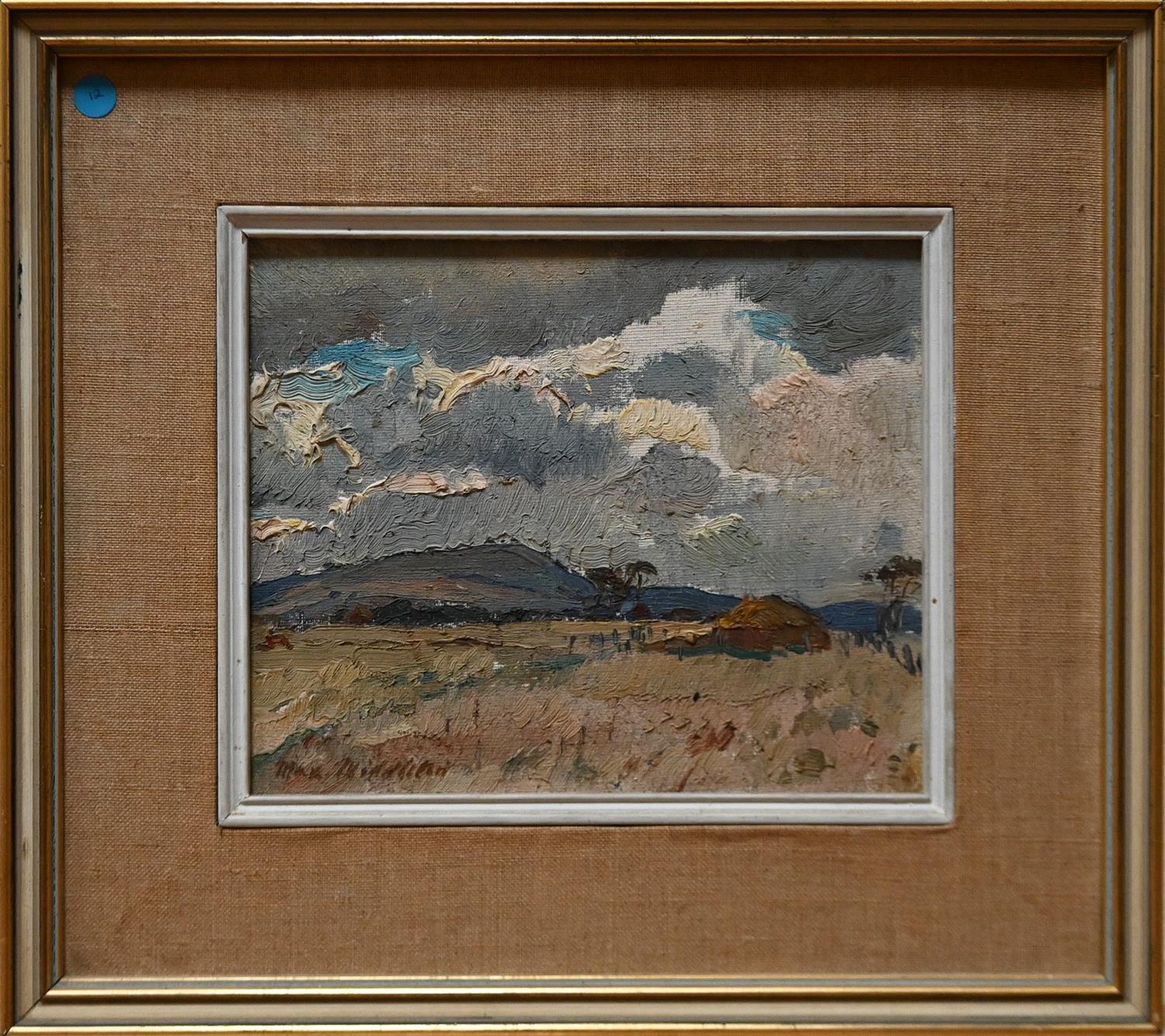 MAX MIDDLETON, (CLOUD OVER BACCHUS MARSH), OIL ON CANVASBOARD,  SIGNED LOWER LEFT, 18.5 X 22CM, FRAME SIZE: 33.5 X 37CM