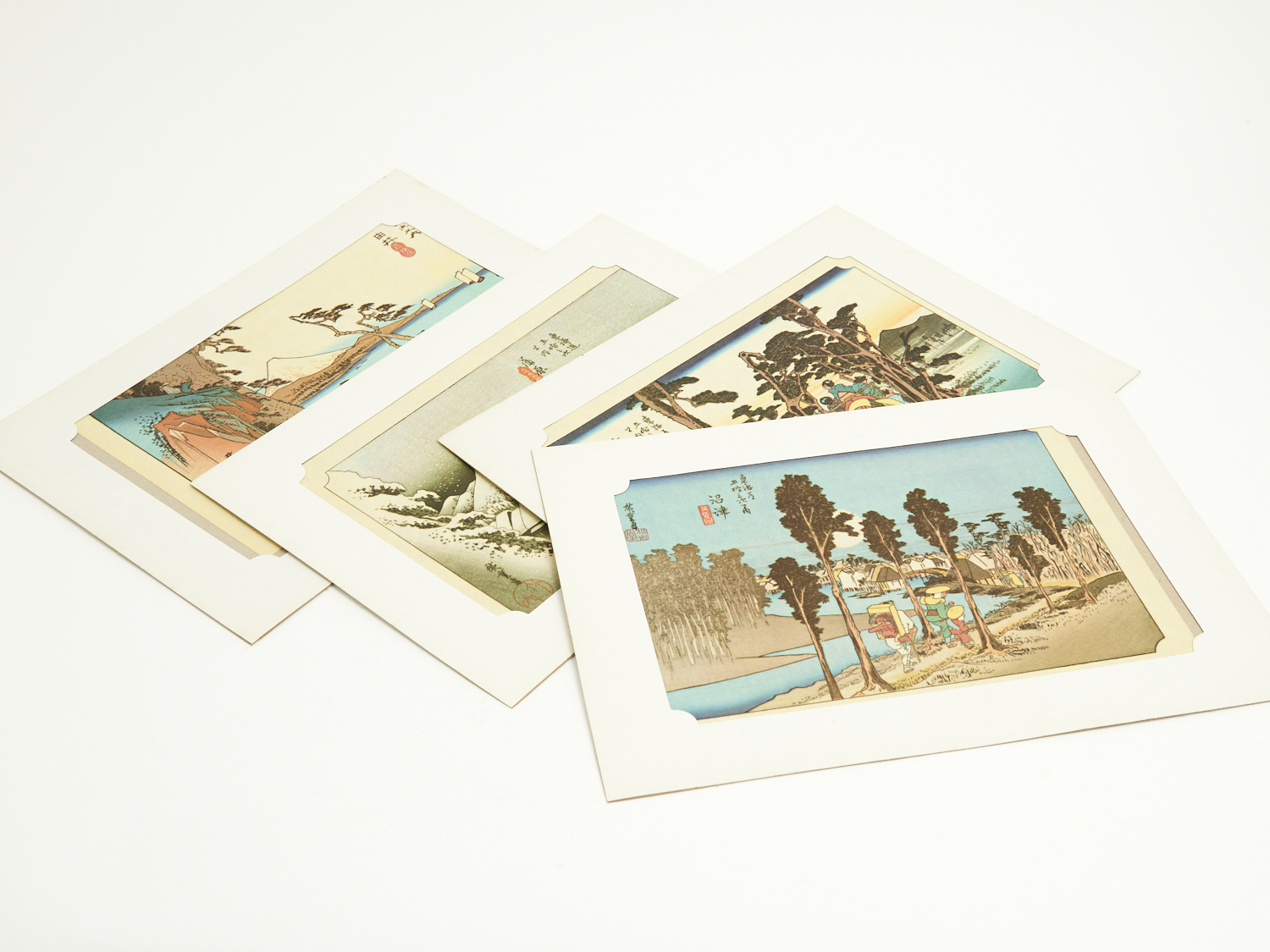 FOUR HIROSHIGE PRINTS FROM 53 STATIONS (10,11,12 & 13 LATER EDITIONS) 27 X 38.5CM, LEONARD JOEL LOCAL DELIVERY: SMALL