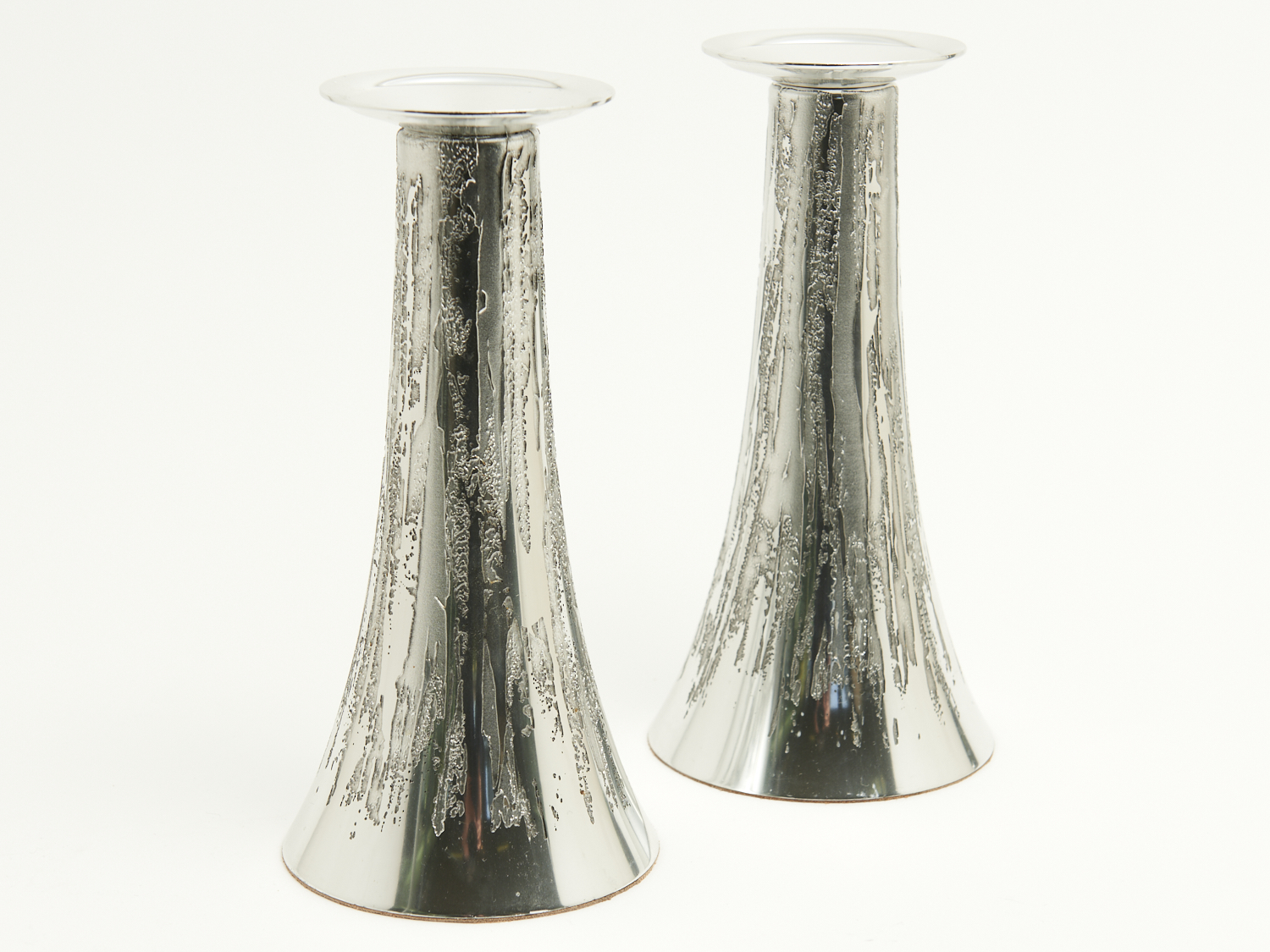 A PAIR OF DON SHEIL CANDLESTICKS H.24CM, LEONARD JOEL DELIVERY SIZE: SMALL