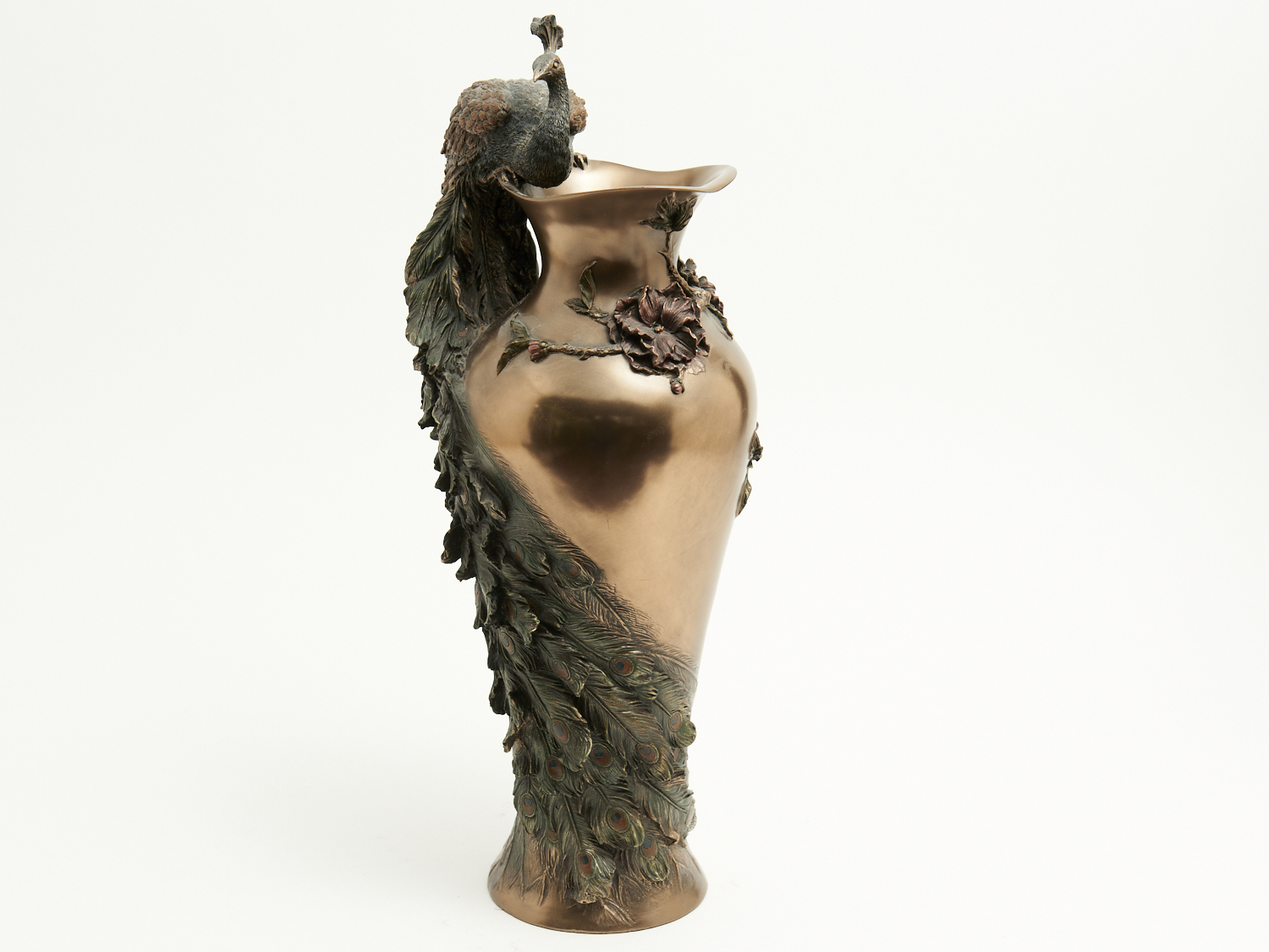 A DECORATIVE CAST METAL 'VERONESE' PEACOCK VASE H.50CM, LEONARD JOEL LOCAL DELIVERY: MEDIUM