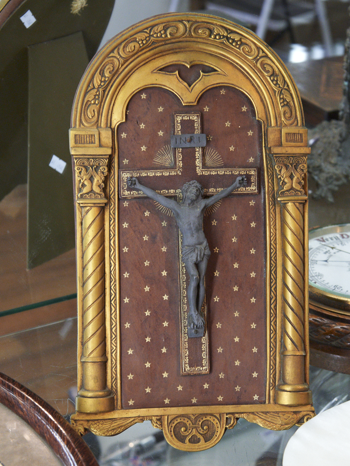 A FINE ITALIAN ORMOLU AND LEATHER CRUCIFIX H.35.5CM, LEONARD JOEL DELIVERY SIZE: SMALL
