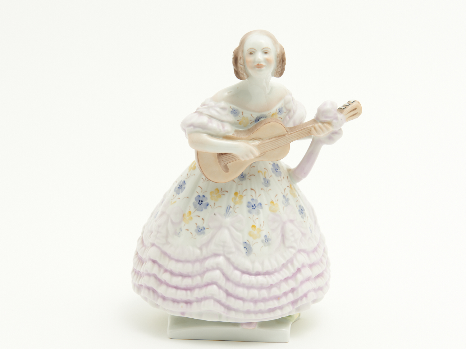 A HEREND PORCELAIN FIGURE OF A FEMALE MUSICIAN H.21CM, LEONARD JOEL LOCAL DELIVERY: SMALL