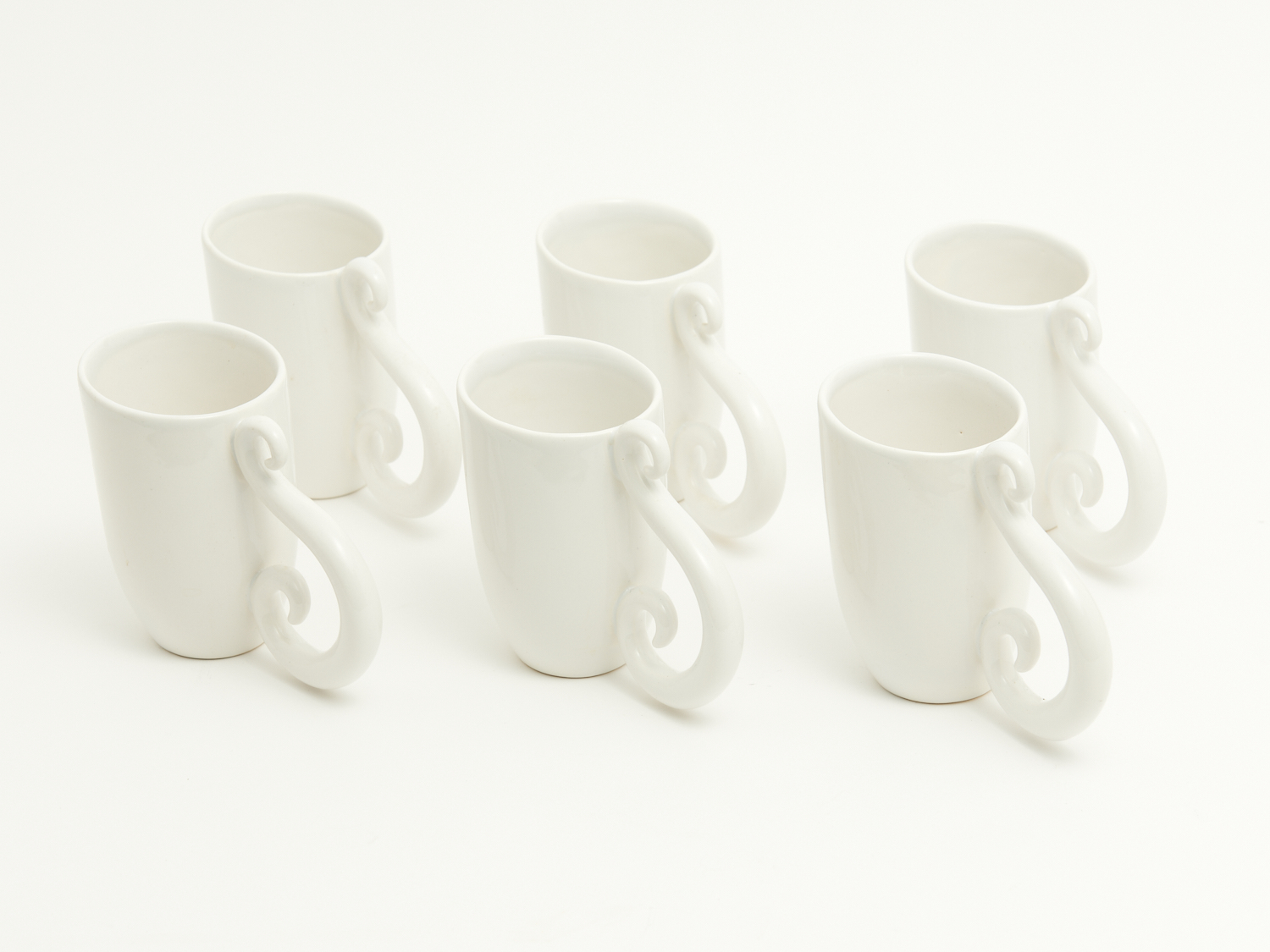 A SET OF SIX WHITE JENNY ORCHARD MUGS H.12CM, LEONARD JOEL LOCAL DELIVRERY: SMALL
