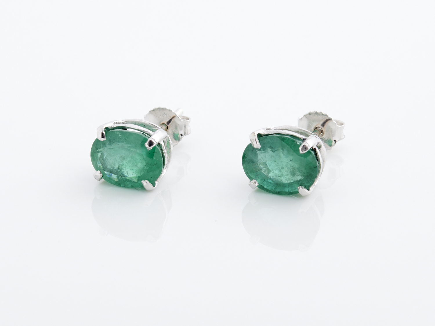 A PAIR OF EMERALD EARRINGS IN 18CT WHITE GOLD, THE EMERALDS TOTALLING 4.24CTS, TO POST AND BUTTERFLY FITTINGS