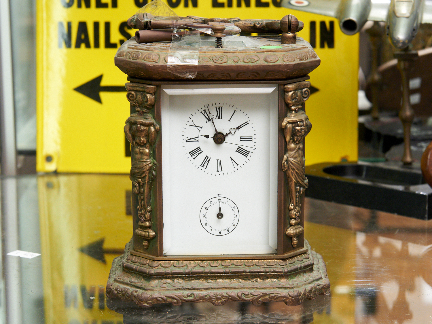 A CAST BRASS-CASED CARRIAGE CLOCK H.18CM, LEONARD JOEL LOCAL DELIVERY: SMALL
